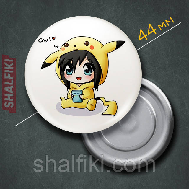 "Чібі хлопчик у костюмі Пікачу" магніт круглий Ø44 мм