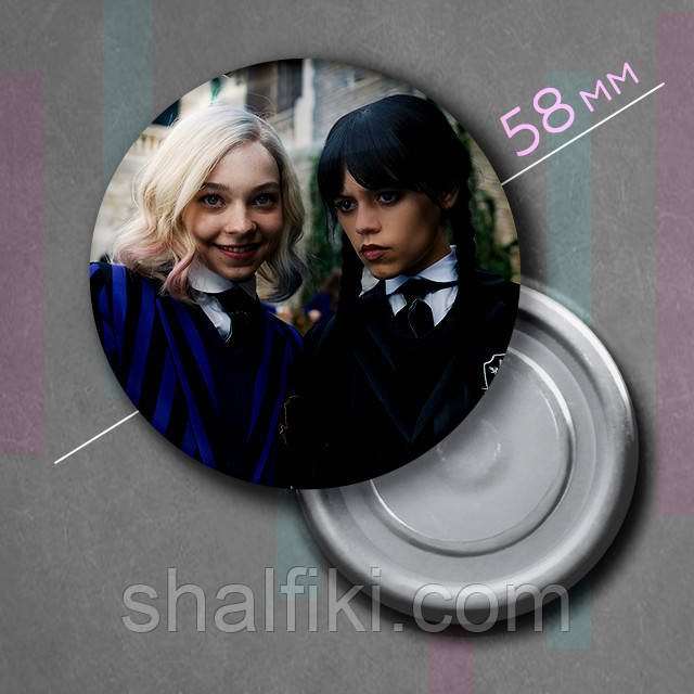 "Венздей Аддамс і Енід (Венздей / Wednesday)" магніт круглий Ø58 мм