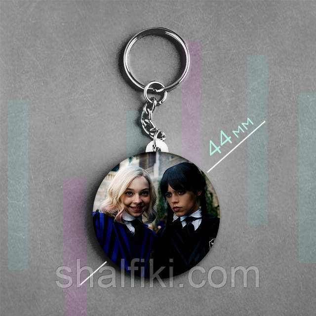 "Венздей Аддамс і Енід (Венздей / Wednesday)" брелок круглий Ø44 мм